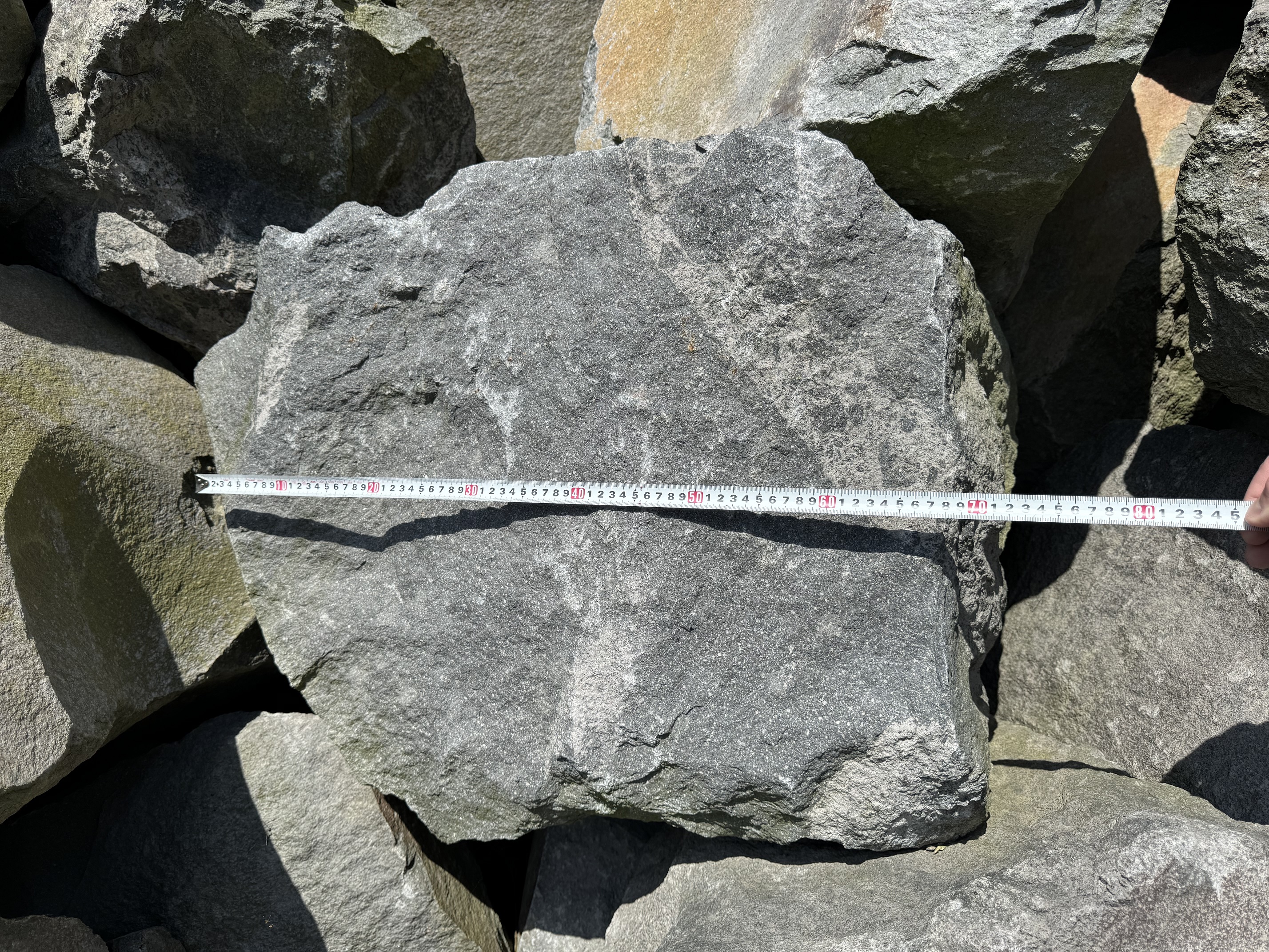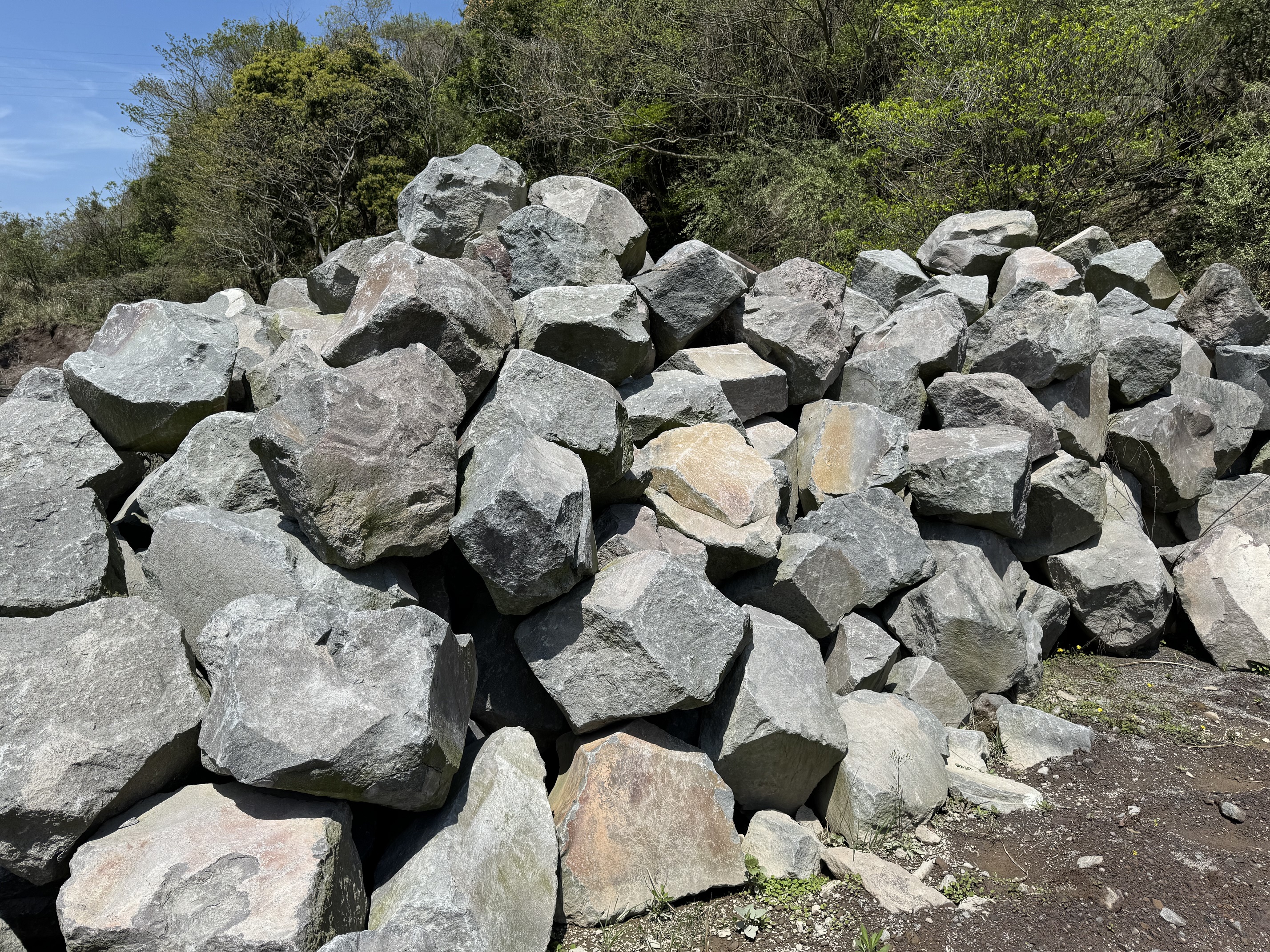 天然の岩石を油圧ブレーカーで各大きさに整形した石材です。