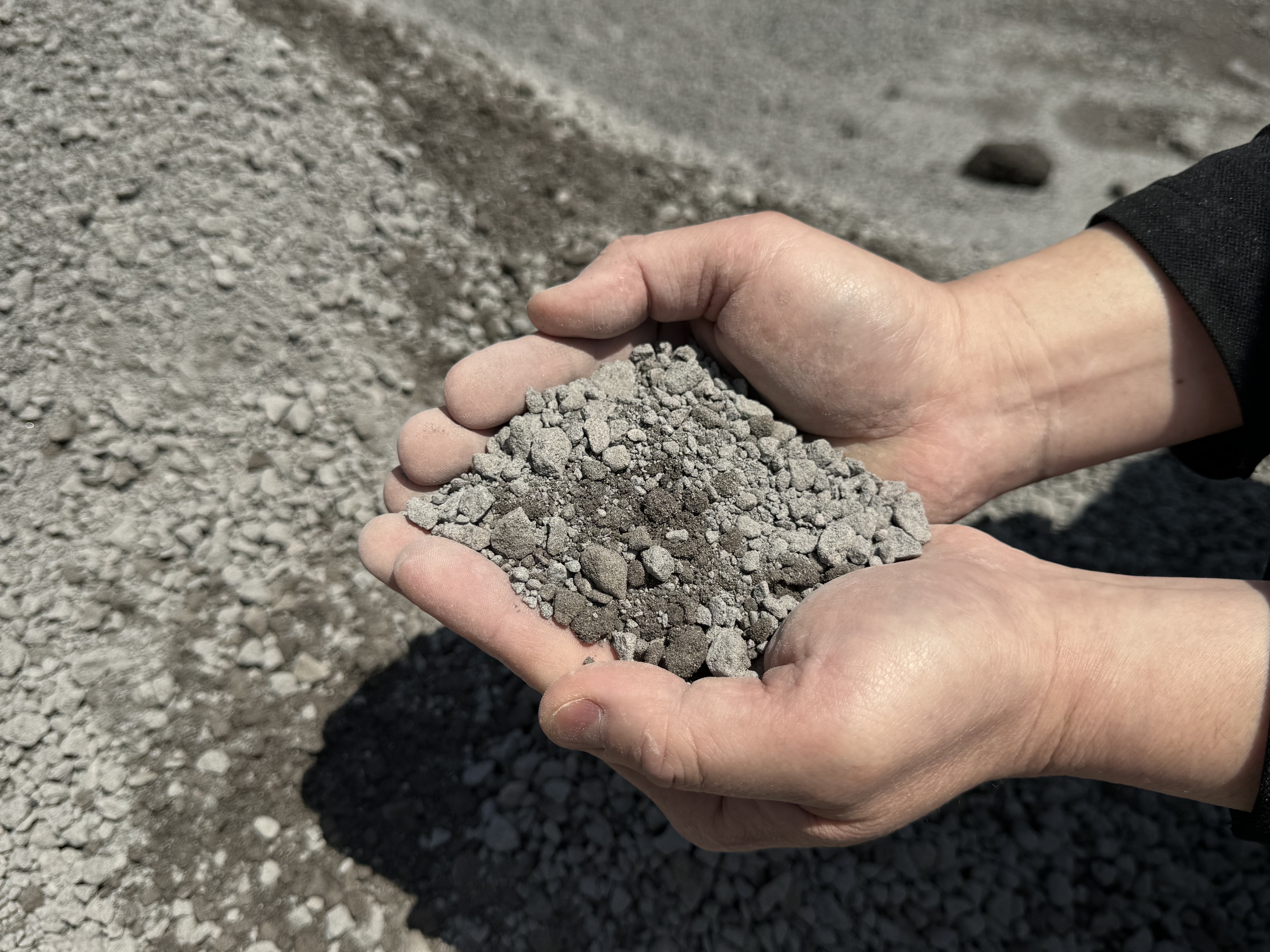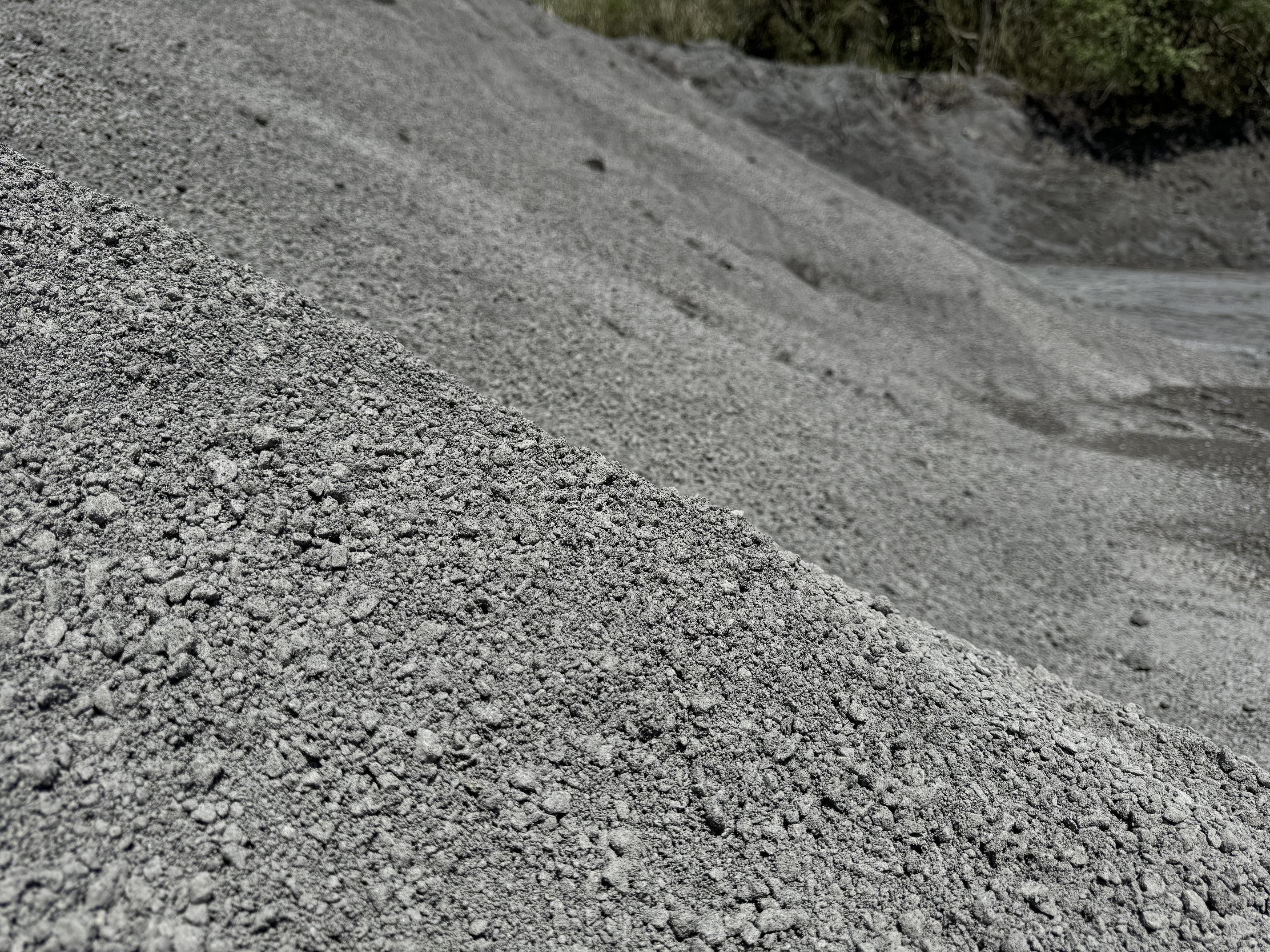 天然の岩石を破砕機で破砕し5mm以下にふるい分けした砕石と単粒度砕石13mmを1:1で混合した砕石です。