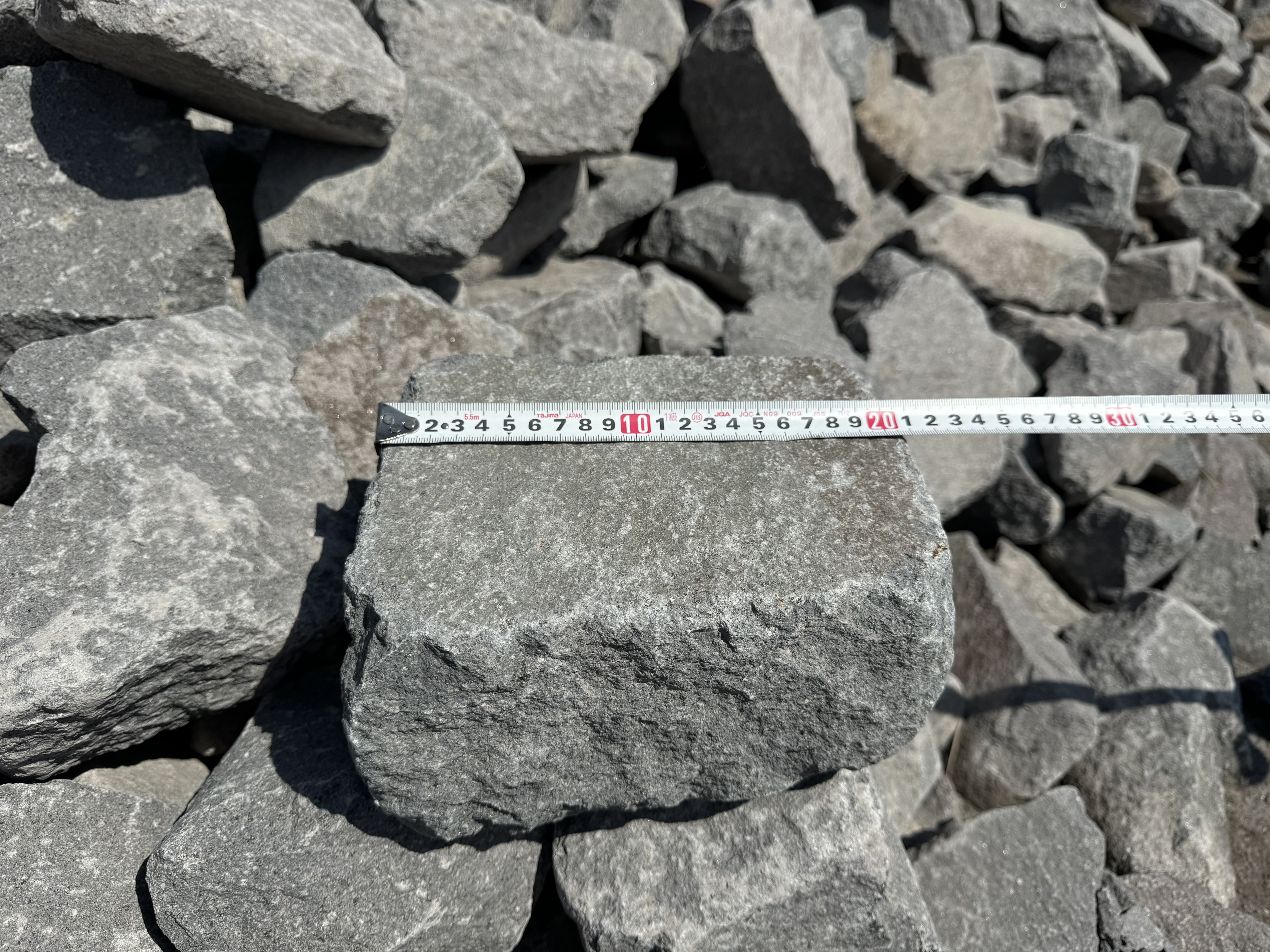天然の岩石を破砕機で破砕し15cmから20cmの範囲でふるい分けした石です。